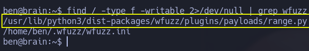 find / -type f -writable 2> /dev/null | grep wfuzz