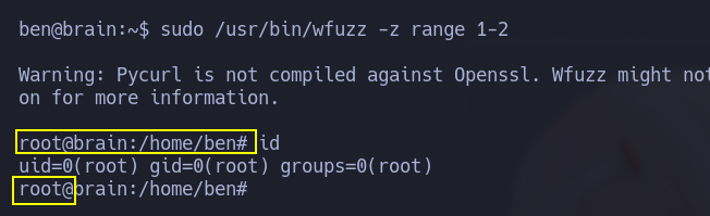 9. Listamos permisos sudo, podemos ejecutar el binario wfuzz como root.