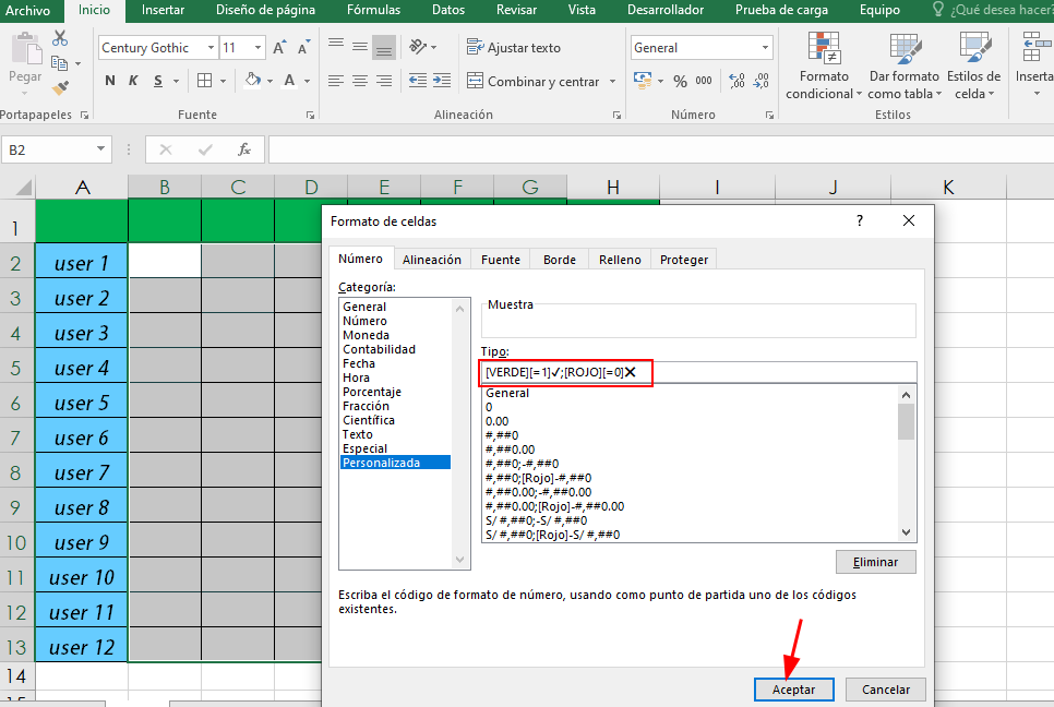 [VERDE][=1]✔️;[ROJO][=0]❌