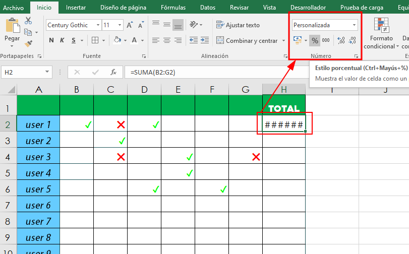 8. Nos sale un formato incorrecto, en el apartado Numero podemos personalizar la salida.