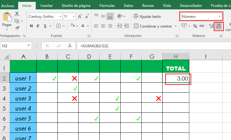 9. Seleccionamos el formato Numero y le quitamos los valores decimales.